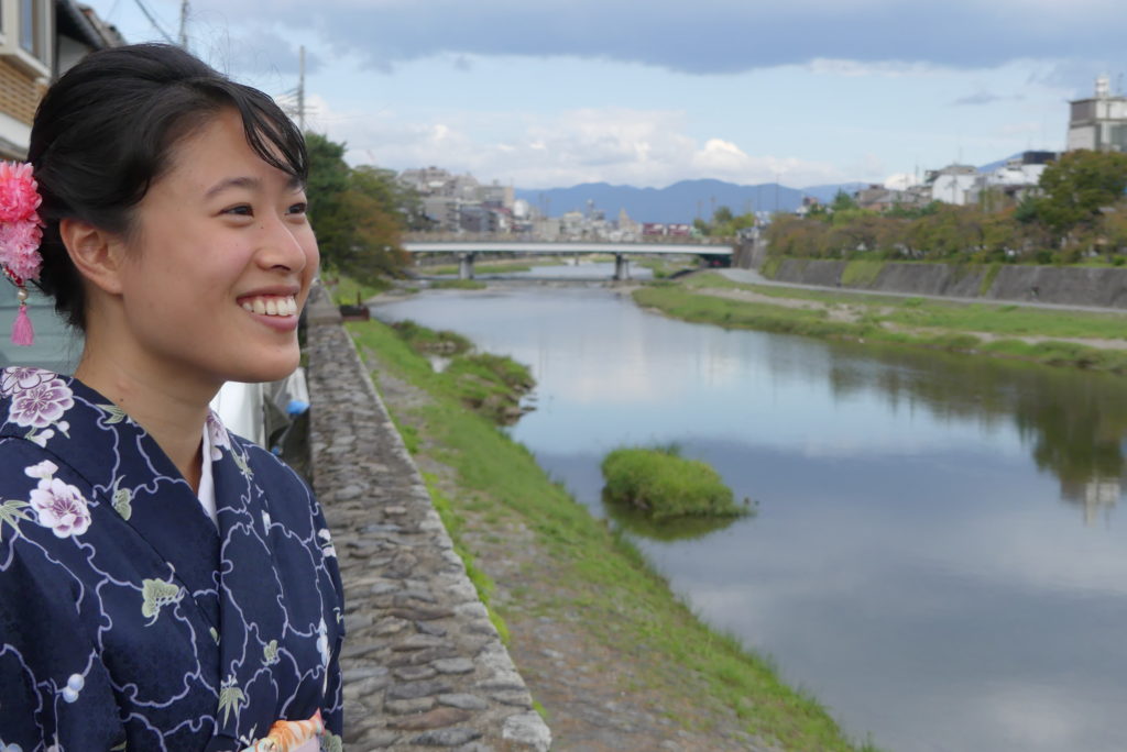 Excursion en kimono dans le quartier Motoshiogama de Kyoto.